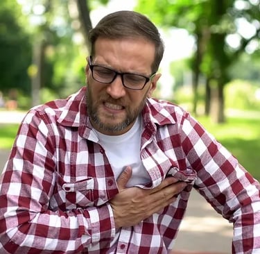Πόνος στο Στήθος: Αίσθηση βάρους ή πίεσης, που μπορεί να εξαπλώνεται σε άλλες περιοχές όπως ο λαιμός, το σαγόνι ή το αριστερό χέρι.